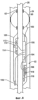 фиг.6. На фиг.8 труба 26 содержит увеличенный кольцевой карман 100, в который помещены электронные устройства и управляемый газлифтный клапан 52 настоящего изобретения. Газлифтный клапан 52 смонтирован в трубах и не может вводиться и восстанавливаться путем приклеивания через оправку 70 на фиг.6 (то есть “транспортироваться по трубам”). Управляемый клапан 52 на фиг.8 содержит заземляющий провод 102 (аналогичный заземляющему проводу 66 на фиг.6), который является изолированным пропускным проводом для присоединения к дуговому токоприемнику 61 централизера, заземленному на обсадную колонну 24. Электронный модуль 106 соединен коммуникациями и источниками энергии с трубами 26 через энергетическую и сигнальную перемычку 104. Снабженный приводом от электродвигателя клапан 108 схематически показан, но работает аналогично показанному на фиг.7 для управления оперативной коммуникацией кольцевого пространства между трубами 26 и обсадной колонной 24 во внутреннем пространстве труб 26. Аналогично с фиг.7 обеспечивается реверсивный клапан 110.