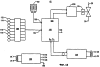 Подвод 166 энергии на фиг.12 превращает ток номинальной переменной линии в плюс 5 вольт постоянного тока на выходе 192 минус 5 вольт постоянного тока на выходе 194 и плюс 6 вольт постоянного тока на выходе 196, который используется различными элементами внутри электронного модуля 82 (земля изображена на выходе 198). PIC 170 применяет плюс 5 вольт постоянного тока, в то время как вспомогательный модем 130 использует плюс 5 и минус 5 вольт постоянного тока, как показано на выходе 192, 194). Шаговый двигатель 84 использует плюс 6 вольт постоянного тока, как показано на выходе 196. Подвод 166 энергии включает повышающий трансформатор для превращения номинальных 6 вольт переменного тока в 7,5 вольт переменного тока. 7,5 вольт переменного тока затем выпрямляют в полный волновой шунт для производства 9,7 вольт нерегулированного постоянного тока. Трехтерминальные регуляторы имеют регулируемые выходы 192, 194, 196, которые плохо фильтруются и защищены реверсивным EMF контурной схемой. Как можно оценить, модем 30 является основным потребителем энергии, в типичном случае применяющим 350 миллиампер при±5 вольт пропускаемого постоянного тока.