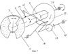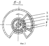 – два вращающихся звена (труба 7 с жестко связанным выходным валом 24 и кривошип 16 с валом 17). Эти два звена связаны между собой шестеренчатой передачей для управления распределительным механизмом. Эта передача обеспечивает замедленное движение трубы 7 по сравнению с полым валом 4. Труба 7 обеспечивает совмещение своих отверстий 8 и 9 с отверстиями 5 и 6 в полом валу 4 для управления движением зарядов и одновременно передает движение на выходной вал 24;