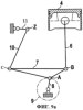 Ниже со ссылкой на фиг.9 (9а и 9б), где изображена кинематическая схема ДВС, показанного на фиг.6 (6а и 6б соответственно), поясняется принцип работы регулируемого кривошипно-шатунного механизма. В процессе работы ДВС его поршень 4 совершает в цилиндре возвратно-поступательное движение, которое передается на шатун 6. Движение шатуна 6 передается через опорную (шарнирную) точку В на поперечный рычаг 7, свобода перемещения которого ограничена за счет его соединения с прицепным шатуном 10 в опорной (шарнирной) точке С. Если точка Z шарнирного соединения прицепного шатуна 10 неподвижна, то опорная точка С поперечного рычага 7 может совершать движение по дуге окружности, радиус которой равен длине прицепного шатуна 10. Положение такой круговой траектории движения опорной точки С относительно корпуса двигателя определяется положением точки Z. При изменении положения точки Z шарнирного соединения прицепного шатуна изменяется положение круговой траектории, по которой может перемещаться опорная точка С, что позволяет влиять на траектории движения других элементов кривошипно-шатунного механизма, прежде всего на положение в.м.т. поршня 4. Точка Z шарнирного соединения прицепного шатуна предпочтительно перемещается по круговой траектории. Однако точка Z шарнирного соединения прицепного шатуна может также перемещаться и по любой иной заданной управляемой траектории, при этом возможна также фиксация точки Z шарнирного соединения прицепного шатуна в любом положении траектории ее перемещения.