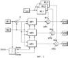 Процесс управления выбегом ДВС начинается с измерения скорости вращения коленчатого вала при прохождении поршнем верхней мертвой точки ВМТ после выключения зажигания и после совершения коленчатым валом заданного количества оборотов. Измеренное значение скорости вращения коленчатого вала условно обозначено на фиг.1а, 1б и 2 как M1. Угол поворота коленчатого вала УПКВ и скорость вращения M1 коленчатого вала определяют известным способом (см., например, DE 3932072 А1) с помощью установленного на этом коленчатом валу специального диска с кодовыми метками. При установке поршней после прохождения ими верхней мертвой точки ВМТ, в которой измеряют первое значение скорости вращения M1, в нижнюю мертвую точку НМТ закрывают клапаны механизма газораспределения, управляющие соединением 1-го и 4-го цилиндров с впускным и выпускным трубопроводами. В рассматриваемом варианте указанная нижняя мертвая точка НМТ отстоит от положения остановки поршня при выбеге ПОВ на угол поворота коленчатого вала, равный -270°. Этот первый, начинающийся в нижней мертвой точке НМТ временной интервал V1 нахождения клапанов в закрытом состоянии заканчивается при повороте коленчатого вала на угол в пределах от -180° до -90°, предшествующий положению остановки поршня при выбеге ПОВ. Каким образом определяется точный момент окончания V1E первого временного интервала V1 нахождения клапанов в закрытом состоянии, поясняется ниже с помощью функциональной схемы, показанной на фиг.2. Для определения момента окончания V1E первого временного интервала V1 нахождения клапанов в закрытом состоянии измеряют скорость вращения коленчатого вала при прохождении им точки, соответствующей его повороту на угол -180°, предшествующий положению остановки поршня при выбеге ПОВ. Это второе измеренное значение условно обозначено как М2.