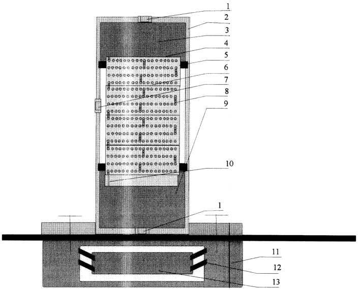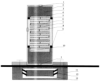 Второй элемент 11 корпуса состоит из электромагнита 13, закрепленного на корпусе через упругие элементы 12.