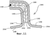 на Фиг.11 – поперечное сечение манжеты, выполненной согласно настоящему изобретению из слоистой структуры, включающей полимерный материал и содержащей два уплотнительных элемента с двумя соединенными вместе жесткими подложками,