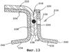 На Фиг.13 изображено уплотнительное кольцо 216, выполненное согласно способу по настоящему изобретению из двух соединенных вместе слоистых структур, включающих полимерный материал, описанных выше и изображенных на Фиг.3. Данный вариант выполнения уплотнительного кольца сходен с описанным выше и изображенным на Фиг.11, за исключением того, что он включает частичную металлическую подложку 218 и пару уплотнительных элементов 220, т.е. металлические подложки и соответствующие уплотнительные элементы выполнены не одинаковой длины. В данном варианте выполнения металлические подложки 218 и 222 соединены между собой только вдоль части длины, так как металлическая подложка 218 не содержит расположенную в осевом направлении выступающую часть, которая бы следовала металлической подложке 222. Таким образом, металлическая подложка 222 определяет наружный диаметр уплотнительного кольца для посадки в сальник или подобный узел. Кроме того, в данном варианте выполнения уплотнительный элемент 220 также не содержит расположенную в осевом направлении выступающую часть, как у уплотнительного элемента 224.