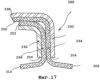 Как и в варианте выполнения уплотнительного кольца, изображенного на Фиг.15, две пары металлических подложек и полимерных материалов, образующие уплотнительное кольцо 288, соединены вместе за счет механического сцепления, а не сваркой или склеиванием. В данном примере две пары соединены вместе путем обычной прокатки и гибки. Более конкретно, металлической подложке 292 придаются такие размеры и форму, чтобы ее можно было расположить в осевом и радиальном направлениях внутри металлической подложки 290 и уплотнительного элемента 294. Металлическая подложка 292 и соответствующий уплотнительный элемент 296 фиксируются в требуемом положении относительно уплотнительного элемента 290 путем загибания края 298 наружного диаметра металлической подложки 290 радиально внутрь, обеспечивая прижим краевой части 300 уплотнительного элемента 294 к краю 302 уплотнительного элемента 296. Эта прижимная сила используется для создания механического сцепления между парами.