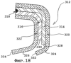 На Фиг.18 изображено уплотнительное кольцо 312, выполненное согласно способу по настоящему изобретению из двух соединенных между собой слоистых структур, включающих полимерный материал, как описано выше и изображено на Фиг.3.