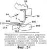 На Фиг.5С изображена манжета 94, установленная в сальнике, или канавке, 96 и, как и манжета, представленная на Фиг.5В, содержит уплотнительный узел, включающий металлическую подложку в виде расположенного снаружи жесткого корпусного элемента 96 и расположенный внутри слой уплотнительного полимерного материала с малым коэффициентом трения, выполненный в виде уплотнительного элемента 98. В данном варианте исполнения манжета аналогична рассмотренной выше и представленной на Фиг.5В за исключением конструкции уплотнительного элемента 98. Более конкретно, уплотнительный элемент содержит часть, выступающую наружу от корпусного элемента 96, которая имеет необходимые поверхностные особенности, выполненные для улучшения уплотняющей способности относительно подвижной уплотняемой поверхности 108.