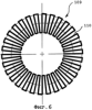 На Фиг.6 изображен вариант способа изготовления уплотнительного устройства 109 согласно настоящему изобретению, в котором часть металлической подложки 110 слоистой листовой структуры имеет форму пружинной шайбы. Хотя этот пример выполнен так, что устройство имеет непрерывную конструкцию, т.е. такую, где отдельные элементы подложки, образующие пружины, прикреплены одна к другой, при этом следует иметь ввиду, что в объеме настоящего изобретения предусмотрены варианты исполнения, в которых подложку можно изготавливать различными способами (включающими использование независимых или непрерывных/выполненных за одно целое) элементов подложки в зависимости от конкретной конструкции уплотнительного устройства и/или от вида применения уплотнения.