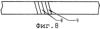 Наружные радиальные отгибы 1 получены загибанием окончания концевых участков 4 при их размещении в плоскости кольца хомута, с образованием площадок 8, перпендикулярно расположенных к концевому участку 4 дуги свернутого в кольцо хомута (фиг.6, 7), и далее поворотом радиальных отгибов 1 на угол от 12° до 17° относительно плоскости, перпендикулярной плоскости кольца хомута (фиг.8). При этом для удобства и сокращения времени монтажа концы 9 радиального отгиба 1 хомута загибают таким образом, что в разведенном состоянии хомута при виде в плане концы 9 расположены с образованием выреза в виде клина (фиг.6) или с образованием U-образной формы (фиг.7).