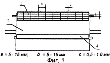 Для нанесения углубления используют валик 5, на поверхности которого имеются линейные выступы шириной 0,5-1,0 мм, образующие прямоугольники с размером сторон 5-15 мм, вращающийся параллельно сушильному вальцу с возможностью его радиального перемещения.