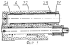 Во втором варианте исполнения узел фиксации ствола выполнен в виде пружинных конических колец 22, размещенных в полости подвижного основания 4 на казенной части ствола 12 и поджатых с открытого торца гайкой 23 к выступу 24, выполненному в полости подвижного основания.
