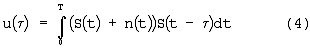 Cо второго выхода блока 4 формирования модулирующего сигнала сигнал поступает на вход блока 6 формирования опорного сигнала, в котором преобразуется в опорный сигнал, совпадающий по форме с сигналом S(t) огибающей межпериодной модуляции. С выхода блока 6 опорный сигнал поступает на линию задержки 10, с выхода которой задержанный опорный сигнал поступает на второй вход умножителя 12. В умножителе 12 опорный сигнал умножается на выходной сигнал детектора 11: S(t)+n(t), где n(t) – шум части приемного устройства, включающего блоки 7, 8, 10, 11. Интервал задержки опорного сигнала выбирается в линии задержки 10 в пределах от нуля до интервала наблюдения Т. С выхода умножителя 12 сигнал подается на вход интегратора 13, где формируется сигнал u( ), равный: