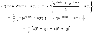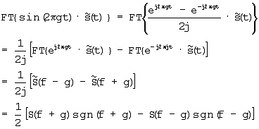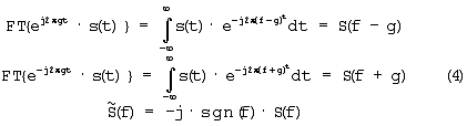Если в непрерывном времени действительный сигнал s(t) переносится по частоте на величину g Гц, то в результате получается сигнал