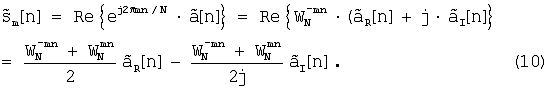 где обозначение kmodN означает целочисленный остаток от деления индексной переменной k на размер обрабатываемого цифрового потока данных N, и с учетом того, что можно записать