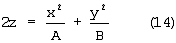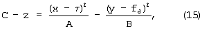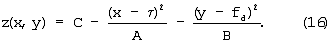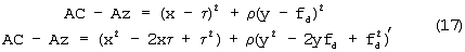 Введем обозначение =А/В и приведем уравнения (15)-(16) к линейному, относительно неизвестных пока параметров параболоида (16) , fd, A, B, C, виду