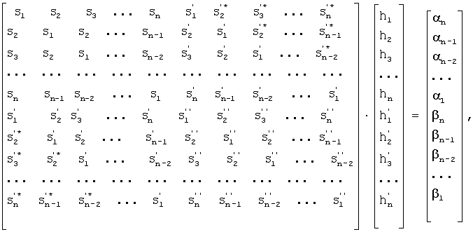 (n+1) = h(1)y(2)+…+ h(n)y(n+1)+ h'(1)у'(2)+…+ h'(n)у'(n+1),