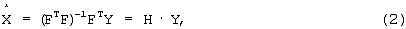 где “-1” символ обратной матрицы; H=(FTF)1-1FT – матрица весовых коэффициентов размерности (m+n-1)× 2m.