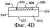 В двух предыдущих конструкциях использовался единственный магнит, размеры которого совпадали с размерами удерживаемой дифракционной решетки и несущего элемента, если таковой имелся. Можно использовать и магнит меньших размеров. Кроме того, при использовании нескольких катушек можно использовать другие конфигурации с несколькими постоянными магнитами, расположенными в различных местах относительно дифракционной решетки. Магнитный элемент также можно выполнить в виде постоянных магнитов, образованных дискретными частицами, рассеянными по всему несущему элементу, или вкрапленными в него, с любой желаемой концентрацией. На фиг.4С-4Е для иллюстрации показано несколько возможных конструкций магнита. На каждом из этих чертежей позиция 506 обозначает постоянный магнит, а позиции 508 и 510 соответственно обозначают дифракционную решетку и несущий элемент. На этих чертежах несущий элемент 510 имеет прямоугольную форму и имеет верхнюю поверхность 520, нижнюю поверхность 522, передний край 524 и задний край 526. Однако описание прямоугольного несущего элемента 510 является лишь иллюстративным и не ограничивает объем изобретения, поскольку геометрию несущего элемента 510 можно изменить. При использовании нескольких магнитов и нескольких катушек взаимодействие результирующих магнитных полей может отличаться от описанного в связи с фиг.1, поэтому может потребоваться некоторая модификация этой системы. Однако на основе решений, показанных на фиг.1, при соответствующей их модификации специалисты могут разработать уникальные конфигурации и при этом воспользоваться преимуществами от использования дополнительных движущих сил для достижения специальных эффектов.