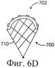 В качестве альтернативы фасеточный поворотный элемент может иметь решетчатую или сетчатую несущую часть, как показано позицией 710 на фиг.6D. Кроме того, несущая часть может иметь полую центральную часть 712, а поверхностная часть может поддерживаться концами опорных стержней 714 и 716, как показано на фиг.6С. Хотя описанная несущая часть фасеточного поворотного элемента была круглой или представляла собой сектор круга, на фиг.6Е показано, что несущая часть может иметь форму многоугольника. Несущая часть может быть разработана в любой конфигурации, которая способна поворачиваться вокруг оси и нести на себе фасеточную поверхностную часть. Несущая часть 700, показанная на фиг.6В-6Е, может, например, нести фасеточную поверхностную часть, показанную на фиг.5, или может содержать фасетки, включающие опоры, как на фиг.6А.