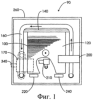 На фиг.1 показаны ограничители 200 и 210, которые предотвращают поворот магнита 120 за желаемые пределы. Чтобы показать ограничитель 210, часть магнита 120 на чертеже вырезана. Ограничитель 210 может включать емкостной зонд или датчик (не показан), например содержащий алюминированный майлар (Mylar®), который расположен ниже магнита 120 и указывает положение магнита 120. Как только магнит переместится в желаемое положение, он удерживается на месте за счет магнитного поля, окружающего ферромагнитные штыри 220 и 240. Благодаря наличию этих штырей магнит 120 можно удерживать на месте при малом токе через провод 160 или вообще при отсутствии такого тока.
