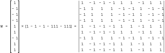 Рассмотрим способ определения весовых значений сети Хопфилда.
