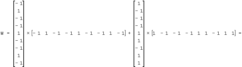 Для сохранения нескольких образов в сети Хопфилда необходимо вычислить все прямые произведения для каждого вектора, и полученные таким образом весовые матрицы сложить.