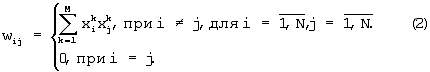 где: n – количество модулей СОК, pi – модуль СОК. Сеть Хопфилда состоит из одного слоя нейронов, которые принимают решение асинхронно, связь между ними осуществляется мгновенно и все связи симметричны, т.е. wij=wji, тогда синаптические веса НС имеют вид