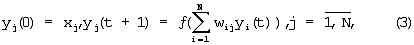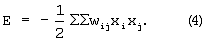 где: wij – i-й синаптический вес j-ого нейрона; хi – i-й элемент входного сигнала сети; – i-й элемент входного вектора-образца; yj – выход j-го нейрона; N – размерность входного вектора; М – количество образцов (разрешенных кодов). Сеть функционирует циклически. В процессе функционирования уменьшается энергетическая функция