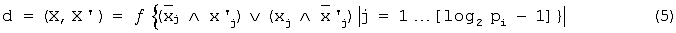Сеть выбирает эталон с минимальным хэмминговым расстоянием от предъявленного входного вектора путем активации только одного выхода сети, соответствующего этому эталону. Расстояние Хэмминга между двумя бинарными последовательностями Х и X’ определяется как число координат, в которых цифры различны. Хэмминговое расстояние представляет собой пример меры сходства, или, вернее, различия, первоначально введенной для бинарных функций образа в декартовое пространство. Она применима для сравнения любых упорядоченных наборов, принимающих дискретные значения, и, вероятно, является наилучшей из известных мер сходства между цифровыми кодами.