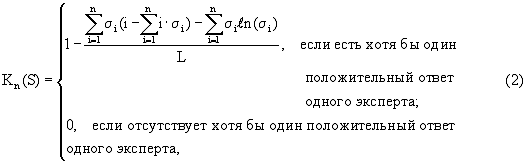 Вычисляется коэффициент согласованности (КС) Kn(S) спектра экспертных оценок по формуле: