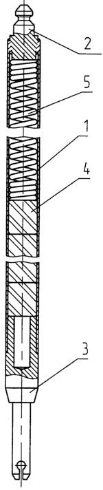 На чертеже представлен предлагаемый тепловыделяющий элемент, состоящий из оболочки 1, загерметизированной сварными швами путем приварки заглушек 2 и 3, ядерного топлива в виде цилиндрических таблеток 4, верхняя часть тепловыделяющего элемента содержит компенсационный объем, в котором размещается пружинный фиксатор 5, представляющий собой либо цилиндрическую пружину, упирающуюся в заглушку 2, либо пружину переменного диаметра, опирающуюся верхними витками на внутреннюю поверхность оболочки (не показано). Фиксатор изготавливается из материала с высокими релаксационными свойствами, например, из стали типа 12Х18Н10Т. Размеры фиксатора, а именно длина, шаг навивки, толщина проволоки, количество витков и другие параметры определяются для каждого конкретного тепловыделяющего элемента отдельно в зависимости от веса топлива и величины компенсационного объема.
