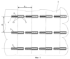 На фиг.1 изображена схема размещения над общим пассивным отражателем симметричных полосковых вибраторов плоской фазированной антенной решетки с прямоугольной сеткой, вид сверху; на фиг.2 – конструкция сборного трехслойного вибратора заявляемой антенны с участком возбуждения вибратора симметричной полосковой линией; на фиг.3 – сравнительная схема взаимного расположения вибратора и полоскового участка его возбуждения относительно плоскости общего пассивного отражателя в конструкции антенны-прототипа (а) и заявляемой антенны (б); на фиг.4 – изготавливаемые по групповой технологии однотипные элементы сборного трехслойного вибратора заявляемой антенны; на фиг.5 – зависимость, характеризующая уровень согласования в полосе частот вибратора заявляемой антенны.