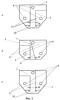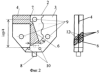 При этом вибраторы 2 могут быть выполнены металлическими или печатными, например, на стеклотекстолитовой основе (на фиг.4 показан печатный вариант выполнения вибраторов заявляемой антенны), а изготовление антенны в обоих случаях включает формирование вибраторов по групповой технологии отдельно по различным видам а, б, в (см. фиг.4) однотипных элементов сборного вибратора 2 с полосковыми отрезками, образующими участок возбуждения 5 линии питания, и сборку вибраторов 2 из указанных элементов, содержащих фиксационные 9 и крепежные 10 отверстия с поворотом указанного на фиг.4 элемента “в” на 180° с ориентацией его полоскового слоя в сторону центрального элемента “б”, с двухсторонним симметричным полосковым исполнением: по обе стороны от диэлектрической подложки 11 – несущей печатно-платной основы вибратора 2 с диэлектрическим заполнителем 12 между печатно-полосковыми элементами “а”, “б” и “ в”.