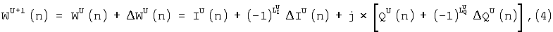 При использовании первого способа регулировки WU(n) выражается в виде комплексного числа: WU(n)=IU(n)+j×QU(n). После следующей регулировки параметр WU+1(n) может быть выражен в следующем виде (формула 4):