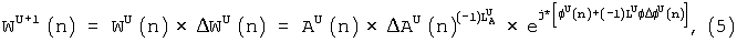При использовании второго способа регулировки WU(n) выражают в полярных координатах: . После следующей регулировки параметр WU+1(n) может быть выражен в следующем виде (формула 5):