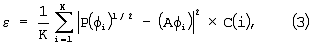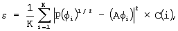 в которой Р( i) представляет мощность излучения антенного элемента, когда параметр формирования диаграммы направленности антенного элемента равен W(n), угол направления равен , параметр Р( i) связан с типом антенной решетки, А( i) представляет уровень излучения в направлении при равном расстоянии, и когда ожидаемая точка наблюдения имеет фазу для полярных координат, К – количество точек отбора, при использовании приближенного способа и C(i) – весовой коэффициент.