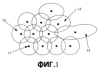 На фиг.1 изображена схема распределения ячеек в сети сотовой мобильной связи. При разработке системы сотовой мобильной связи, прежде всего, требуется учитывать проблему зоны обслуживания. Обычно интеллектуальную антенную решетку беспроводной базовой станции размещают в центре ячейки, как показано черной точкой 11 на фиг.1. Большинство ячеек имеет нормальную круглую зону обслуживания, такую как отмечена цифрой 12. Часть ячеек имеет зону обслуживания в виде несимметричного круга, как отмечено цифрой 13, и зону обслуживания в виде полосы, как показано цифрой 14. Нормальная зона обслуживания 12 круглой формы, зона обслуживания 13 в виде несимметричного круга и зона обслуживания 14 в виде полосы перекрываются, образуя общую зону обслуживания без зазоров между ячейками.