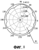 На фиг.7 и фиг.8 изображены диаграммы направленности мощности перед регулировкой и после регулировки, соответственно, для антенной решетки с восемью антенными элементами, обеспечивающей нормальную круговую зону обслуживания, когда один из элементов антенны не обеспечивает нормальную работу.