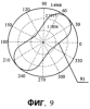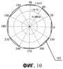 На фиг.9 и фиг.10 изображены диаграммы направленности мощности перед регулировкой и после регулировки, соответственно, для антенной решетки с восемью антенными элементами, обеспечивающей нормальную круговую зону обслуживания, когда два элемента антенны не обеспечивают нормальный режим работы.