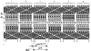 Катушки отображены в виде многоугольников (шестиугольников), причем активные стороны катушек 7… 48 каждой из фаз изображены отрезками вертикальных прямых линий: для первой фазы – с одной стрелкой, для второй фазы – с двумя стрелками, для третьей фазы – с тремя стрелками. Лобовые части катушек 7… 48, соединяющие активные стороны, отображены парами отрезков наклонных линий. Части катушек 7… 48, располагающиеся в первом слое 49, отображены сплошными линиями, а активные и лобовые части катушек 7… 48 второго слоя 50 – пунктирными линиям. Пазы 51, 59,67, 75, 83, 91, не заполненные катушками, обозначены вертикальными отрезками точечных линий.