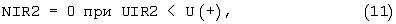 Обозначим по входу логического повторителя 6 (или по первому входу элемента 18) пороги его срабатывания по включению и выключению через U(+) и U(-) соответственно, причем