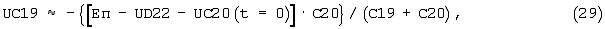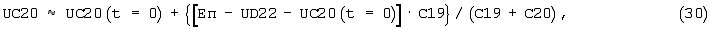 по напряжению U8 Еп происходит заряд конденсаторов 19 и 20 через сопротивление (R24+Rd) соответственно до напряжений UC19 и UC20, определяемых выражениями