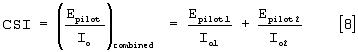 где CSI эквивалентен энергии (Epilot/Io) combined, которая является объединенным отношением пилот-сигнала к интерференции для первого и второго символов БКПВ; Epilot1 – энергия части пилот-сигнала, принятой одновременно с первым символом БКПВ; Epilot2 – энергия части пилот-сигнала, принятой одновременно с вторым символом БКПВ; Io1 – полная энергия части принятого сигнала, которая включает в себя шум и интерференцию, принятой одновременно с первым символом БКПВ; и Io2 – полная энергия части принятого сигнала, которая включает в себя шум и интерференцию, принятой одновременно с вторым символом БКПВ. В настоящем конкретном варианте осуществления Io1 и Iо2 предопределены через схему АРН (автоматической регуляции несущей), и усилители системы регулировки усиления (УСРУ) (не показаны) в радиоприемном тракте 50 МДКР, однако Io1 и Iо2 могут оцениваться через оценки энергии или определяться через другие механизмы без отхода от формы настоящего изобретения.