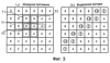 Когда пиксел на пересечении третьей строки и третьего столбца выбирается в качестве исходного пиксела Y1, они становятся равными 8×(-1/4), 8×(2/4) и 4×(-1/4)=-2, +4 и -1, а выходной сигнал схемы 20 суммирования становится равным +1, в то время как, в случае, когда пиксел на пересечении третьей строки и четвертого столбца выбирается в качестве исходного пиксела Y2, они становятся равными 8×(-1/4), 4×(2/4) и 4×(-1/4)=-2, +4 и -1, а выходной сигнал схемы 20 суммирования становится равным -1.