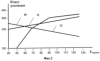 На фиг.2 представлены экспериментально полученные графики зависимости усиливающего действия экранов от напряжения на рентгеновской трубке, где: 10 – зависимость усиления синечувствительных экранов; 11 – зависимость усиления зеленочувствительных экранов; 12 – зависимость усиления экранов по предлагаемому техническому решению.
