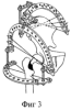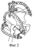 Фиг.2 – схема выполнения остеотомии вертельной области и фиксация остеотомированных фрагментов чрескостным устройством до их коррекционного разворота (опора на дистальном метафизе бедра не показана);