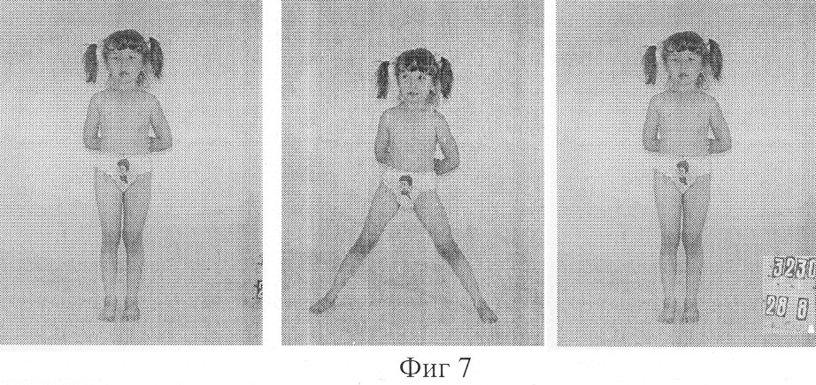 Применение предлагаемого способа не только позволяет устранить сложную двухкомпонентную деформацию проксимального отдела бедра во фронтальной плоскости, но и дает возможность при необходимости устранить патологическое отклонение шейки в горизонтальной плоскости. Использование чрескостного устройства позволяет восстановить длину шейки бедренной кости, что способствует улучшению условий функционирования средней ягодичной мышцы в связи с увеличением расстояния между точками ее прикрепления, а также компенсировать относительное укорочение нижней конечности, обусловленное высоким стоянием большого вертела. Дозированное формирование шейки бедра с образованием дисракционного регенерата дает возможность воздержаться от применения аутотрансплантата. Малотравматичность вмешательства достигается выполнением небольшого разреза с сохранением окружающих сустав мышц и мягких тканей.