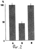Супернатант отделяют и добавляют глицин до конечной концентрации 100 мМ и лизин до конечной концентрации 10 мМ, подводят рН до 7,2 с помощью 0,5 М трис. К полученному раствору прибавляют твин 80 до конечной концентрации 1% и три(н-бутил)фосфат до конечной концентрации 0,3% для проведения инактивации вирусов. Процесс проводят при комнатной температуре в течение 6 часов. Потери активности при этом не наблюдается. В отсутствии же стабилизаторов активность падала примерно на 50% (Фиг. 2: Стабилизирующая роль глицина и лизина. А – активность Cl-эстеразного ингибитора до проведения процедуры вирусной инактивации, Б – активность Cl-эстеразного ингибитора при проведении вирусной инактивации в отсутствии глицина и лизина, В – активность Cl-эстеразного ингибитора при проведении вирусной инактивации в присутствии глицина и лизина). Для определения активности использовали тест-систему Berichrom Cl-INH, Dade-Behring Diagnostics, Германия (Плазма-калибратор Plasma S Dade-Behring). После проведения процедуры вирусной инактивации корректировали проводимость до 6,0 mS/cm.
