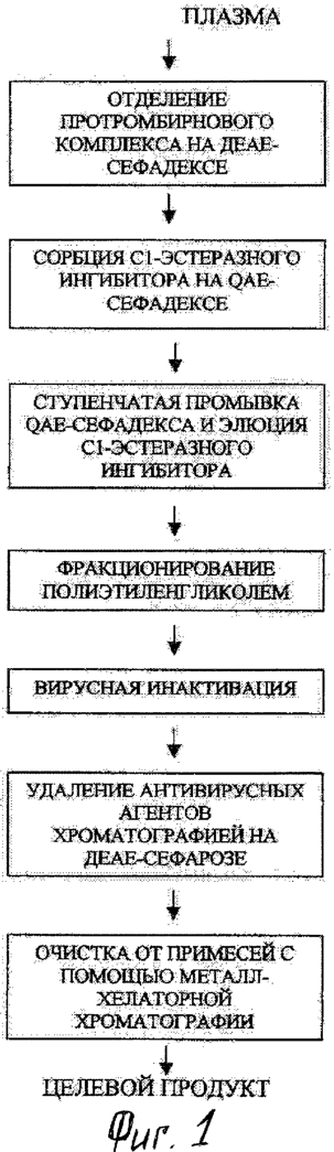 Более подробно способ приведен на Фиг. 1 (схема получения концентрата Сl-эстеразного ингибитора):