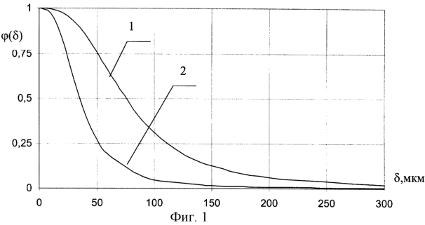 Для устранения переизмельчения материалов применяется схема, в которой материал выходит из мельницы более крупным, чем требуется, а установленный за мельницей классификатор выделяет целевой продукт, возвращая излишне крупные частицы на повторный домол в мельницу. Основной характеристикой разделения классификатора является кривая разделения ( ), определяющая вероятность попадания частиц размером в мелкий продукт /5/. Интегральной характеристикой кривой разделения является граничный размер разделения, соответствующий размеру частиц, вероятность попадания которых в мелкий продукт равна 50%. На фиг.1 приведены кривые разделения классификаторов с границами разделения 75 мкм и 35 мкм.